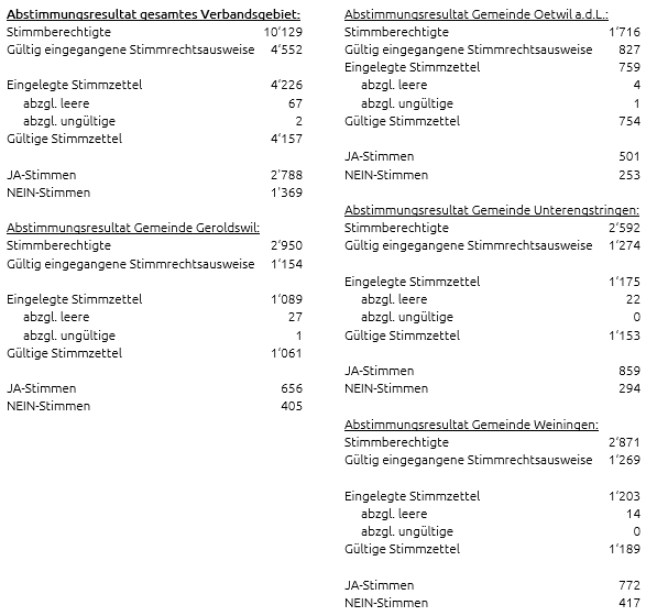 Der Verpflichtungskredit wurde von allen Verbandsgemeinden und der Mehrheit der Stimmberechtigten angenommen. Gemäss Art. 11 Statuten des Zweckverbands “Friedhofverband Weiningen” gilt die Vorlage somit als angenommen.